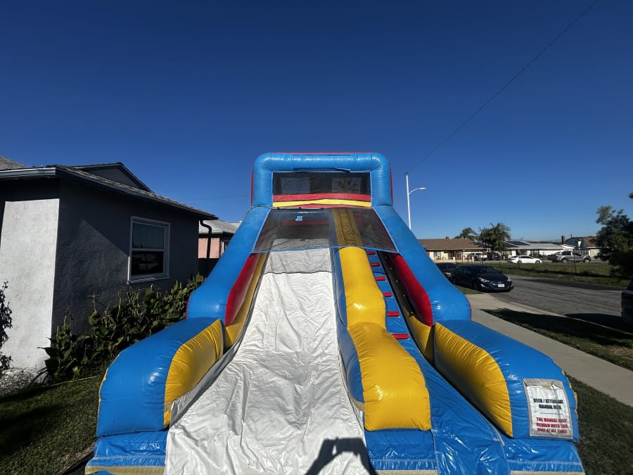 This unit features a "No-Jump" safety net at the top of the slide to prevent kids from jumping out on to the slide for their protection. It also has a front loading stairway to the top of the slide which makes it easy for adult supervision. There's a large bumper wall at the end of the splash pool that prevents chidren from sliding out of the pool area.